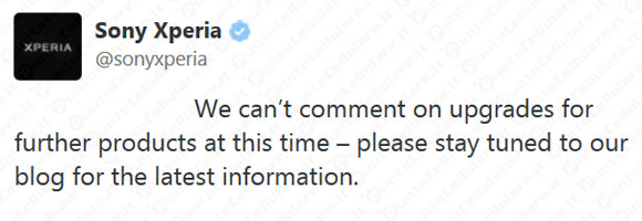 SONY ANDROID CERCA Un laconico 'no comment' arriva via Twitter da Sony Mobile in merito alle recenti indiscrezioni circa il prossimo rilascio degli aggiornamenti ad Android Lollipop anche sugli smartphone di recente fabbricazione non appartenenti alla gamma Xperia Z.