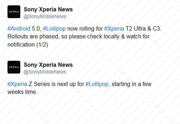 Android Lollipop arriva anche su Sony Xperia T2 Ultra ed Xperia C3