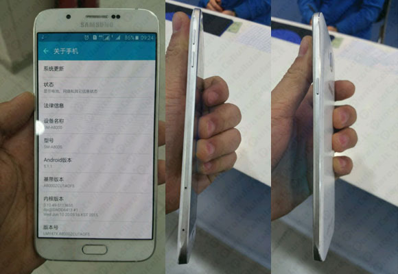 SAMSUNG ANDROID CERCA In anteprima ecco la prima immagine dal vivo del nuovo Samsung Galaxy A8 (SM-A800) , uno dei prossimi smartphone destinati ad arricchire la gamma Galaxy A composta al momento dai Galaxy A3, Galaxy A5 e Galaxy A7.