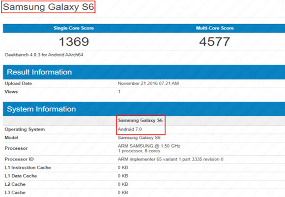 Samsung Galaxy S6 - GFXBench testa un esemplare aggiornato a Nougat